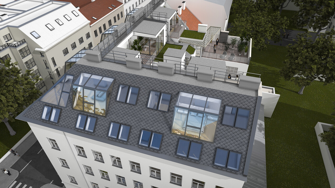 Fünf Dachgeschosswohnungen werden hier realisiert