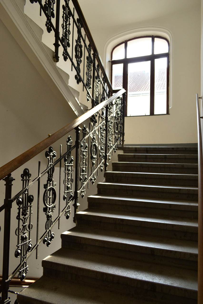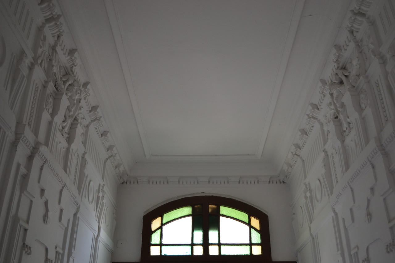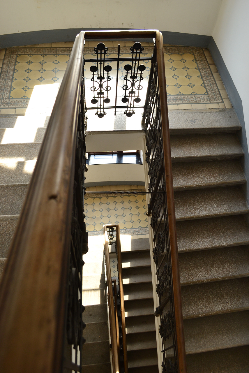 Das Innere des Hauses ist sehr gut erhalten. Das Entrée ist an Wänden und Decke wunderschön verziert, auch die bunten Fliesen stechen ins Auge.