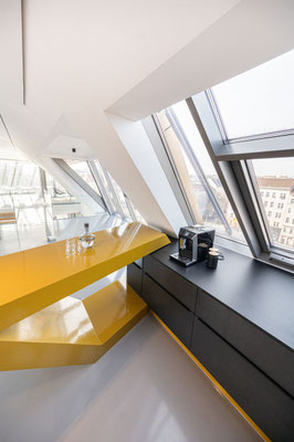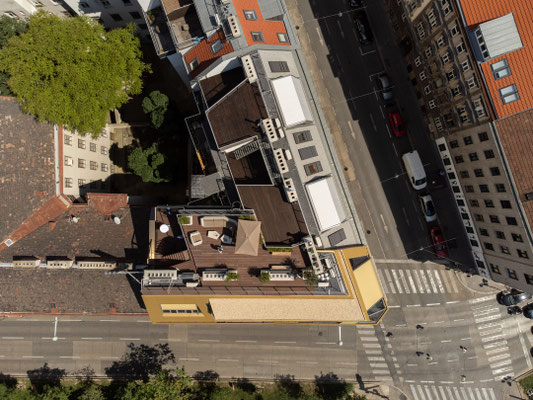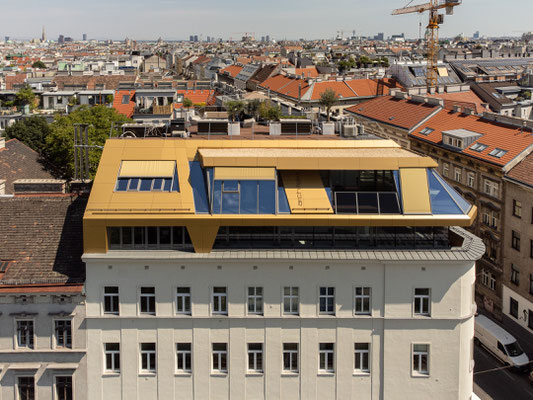 Direkt am Lerchenfelder Gürtel entstand eine gewerbliche Fläche von rund 285 m² sowie 3 Wohnungen mit einladenden Freiflächen und insgesamt ca. 275 m² Wohnfläche auf zwei Ebenen. Büro mit großzügiger begrünter Dachterrasse.